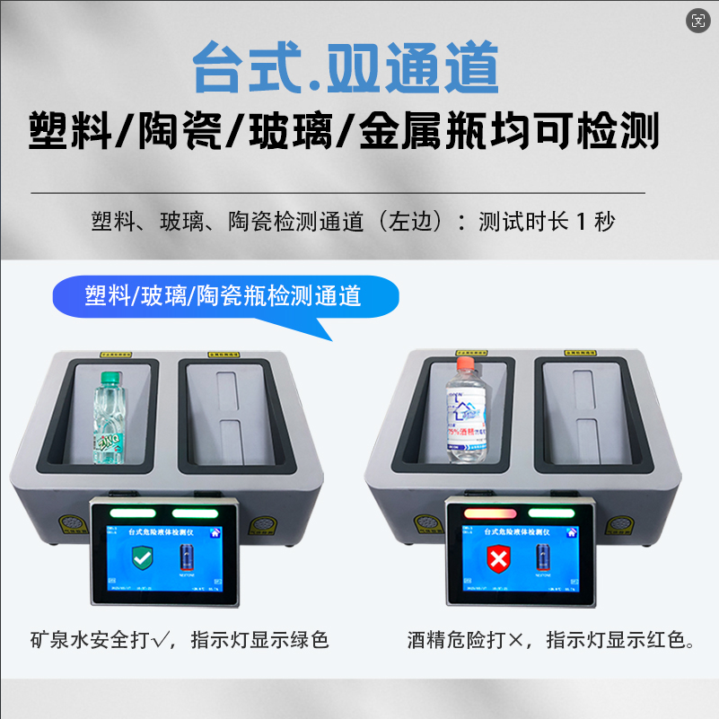 該產品能自動檢測易燃、易爆、易腐蝕性危險液體,有效的防止含有危險液體物品(可引起燃燒或爆炸的液體)進入安全區域,是車站、地鐵、政府機構、體育場館等人流密集和重要活動場所必備的安全檢測設施。